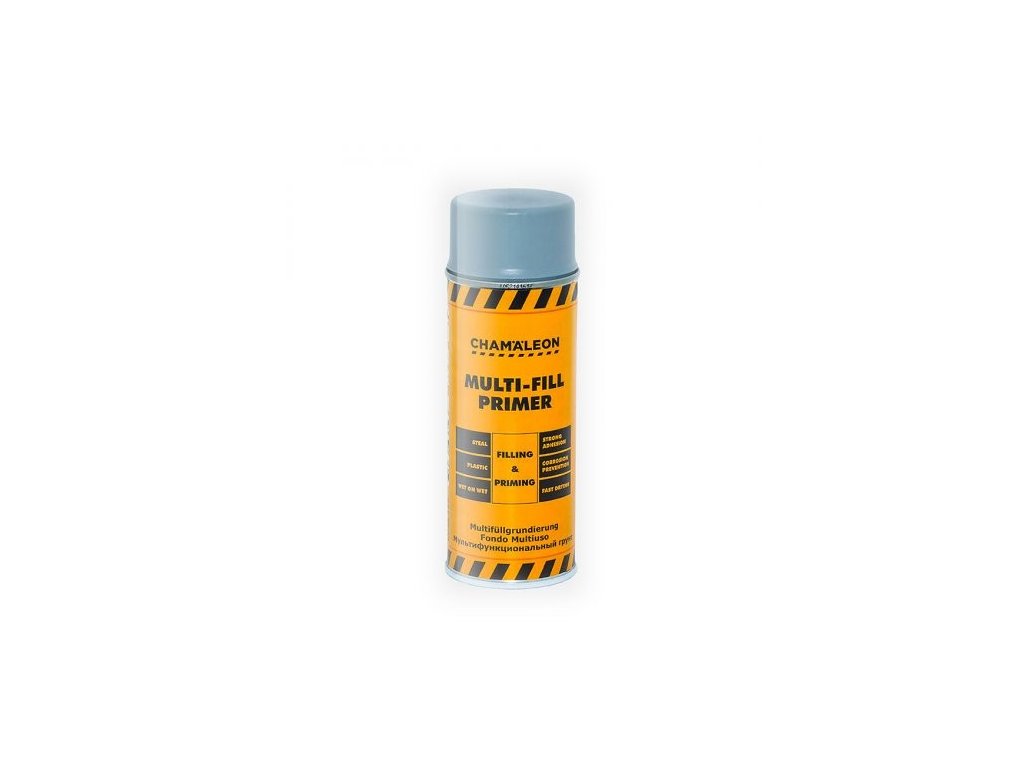 Chamäleon Multi-fill primer sprej 400 ml je univerzální plničový základní nátěr ve spreji určený pro rychlé vyrovnání povrchových škrábanců, pórů a drobných nerovností po broušení na kovových, plastových i starých lakovaných površích. Nabízí excelentní plnící schopnosti, vysoké krytí a umožňuje mokrou na mokrou aplikaci bez bublin, s dobrou brousitelností po zaschnutí.